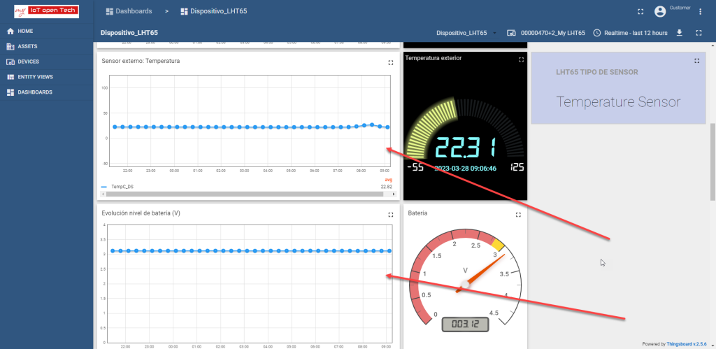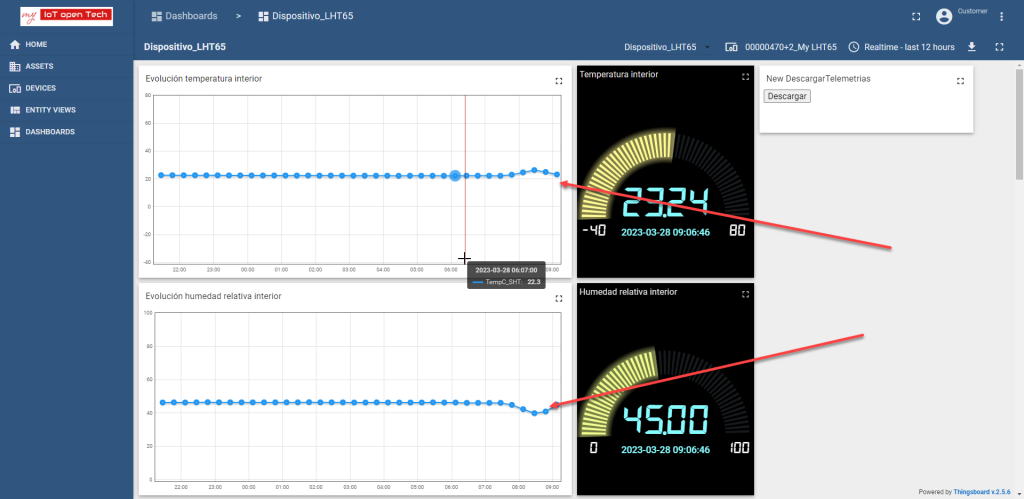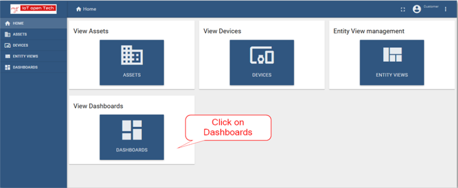 15. Now go to your dashboard in my IoT open Tech and click on your device under root assest. The Dashboard should now show.