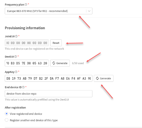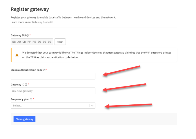 - Fill in the Authentication Code, Gateway ID and the Frequency Plan